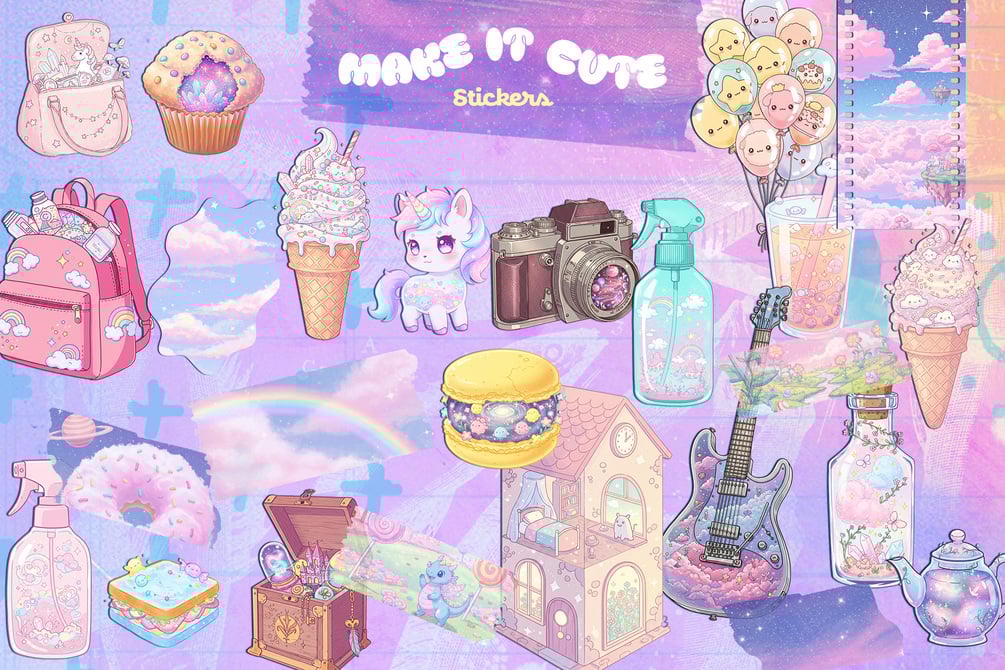 Let your creativity sparkle and turn anything into a feel-good masterpiece with the "Make it Cute" sticker pack. 🧁✨