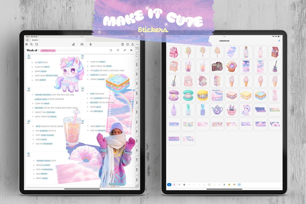 Bring instant charm to your projects with "Make it Cute", a delightful collection of hand-drawn stickers designed to add whimsy and personality to anything you create. Whether you're crafting digital planners, decorating social media posts, or adding flair to your printables, these adorable assets are your go-to bundle for all things sweet and cheerful.
